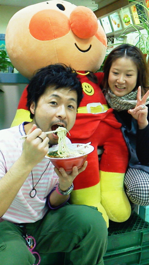 あたしたちと写っているのはサンテオレの人気者、アンパンマンです(笑)