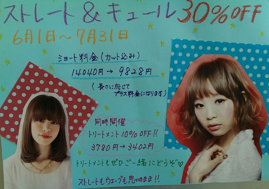 ★只今、ストレート&キュール共に30%OFF!のイベント開催中です★