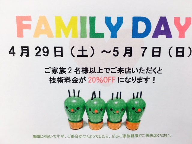 好評いただいているファミリーデーをGWに開催します!!