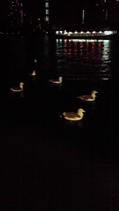 夜景がすごくきれいです。船の周りには餌を欲しがるカモメ達が泣いてます(^-^;