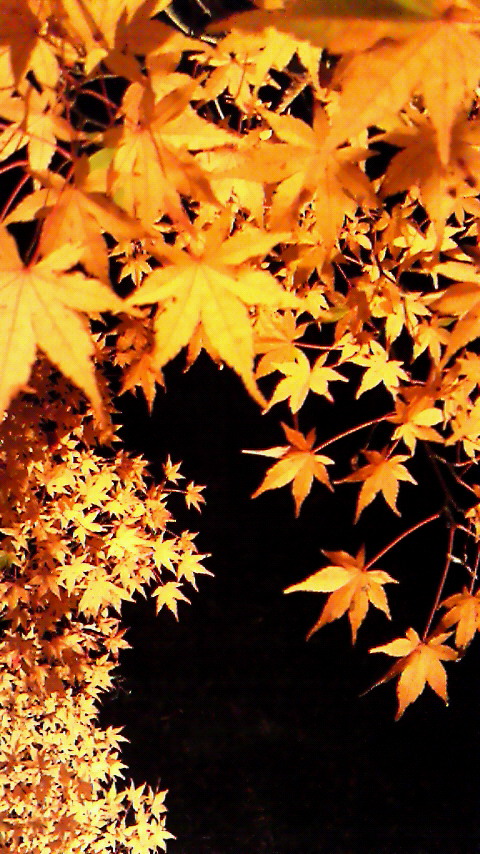 ライトアップされた葉が暗闇に浮かびあがりより色味を強く感じます